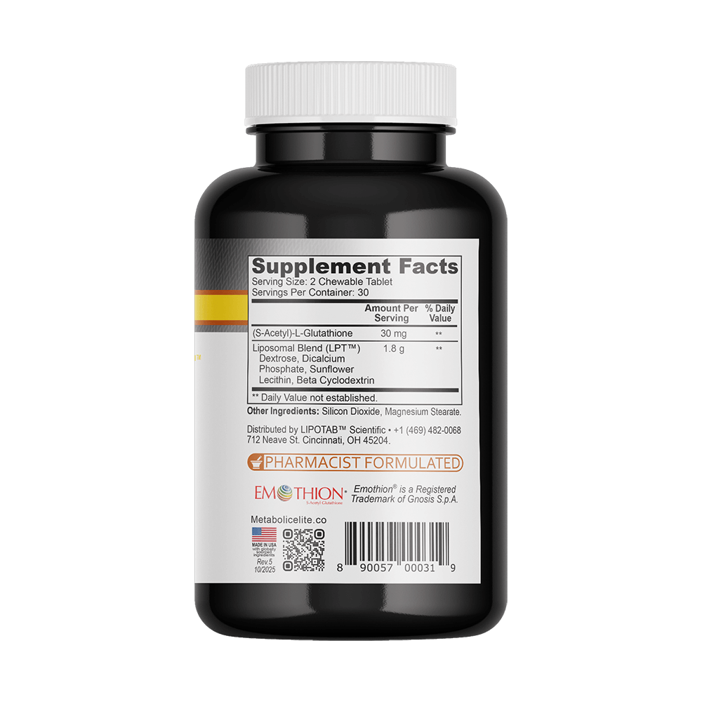 Each Glutathione LPT™ contains: S-acetyl, L-glutathione – 15 mg per LPT™.