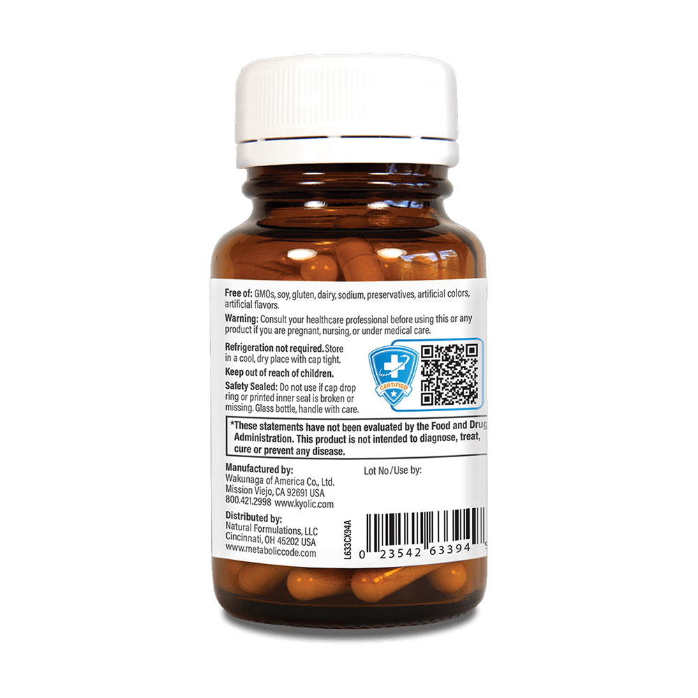 Metabolic Code® Max 12 Probiotic contains a diverse community of twelve beneficial bacteria that includes Kyo-Dophilus® Probiotics – proprietary strains known as the The Friendly Trio® consisting of L. gasseri KS-13, B. bifidum G9-1, and B. longum MM-2. B. infantis, B. breve, and L. rhamnosus and other compatible species help populate the microbiome with beneficial bacteria to promote strong GI health and help maintain digestive and immune system balance.*