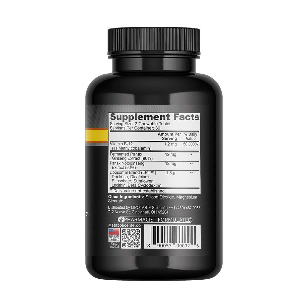 Chew and swallow 2 tablets daily for desired effects (12mg Rg3, 12mg Rb1 and 1,200mcg methylcobalamin daily).
