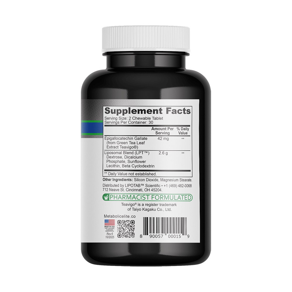 Viraxall LPT™ is formulated as a superior immune supportive supplement but has other activities including ultimate antioxidant support, anti-aging support, and metabolic supportive – weight management. Viraxall LPT™ as Teavigo is a unique, highly bioavailable, chewable liposomal tablet (LIPOTAB™ LPT™) using the polyphenol EGCG (epigallocatechin-3-gallate) from Green tea leaves (Camellia sinensis).